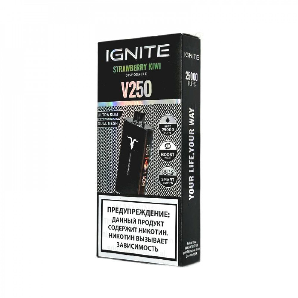 Электронная сигарета Ignite V250 Black 25000 - Strawberry Kiwi (Клубника киви) - купить в Качканаре